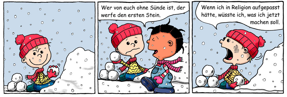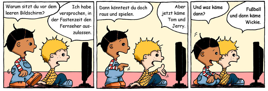 Für Nils, Ping und Joy sind das wichtigste an der Schule die Pausen und an Ostern die Nougat-Eier. Dafür verzichten sie in der Fastenzeit gerne mal aufs Zähneputzen oder auf die Hausaufgaben.